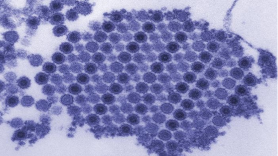 图为电子显微镜下的基孔肯雅病毒
