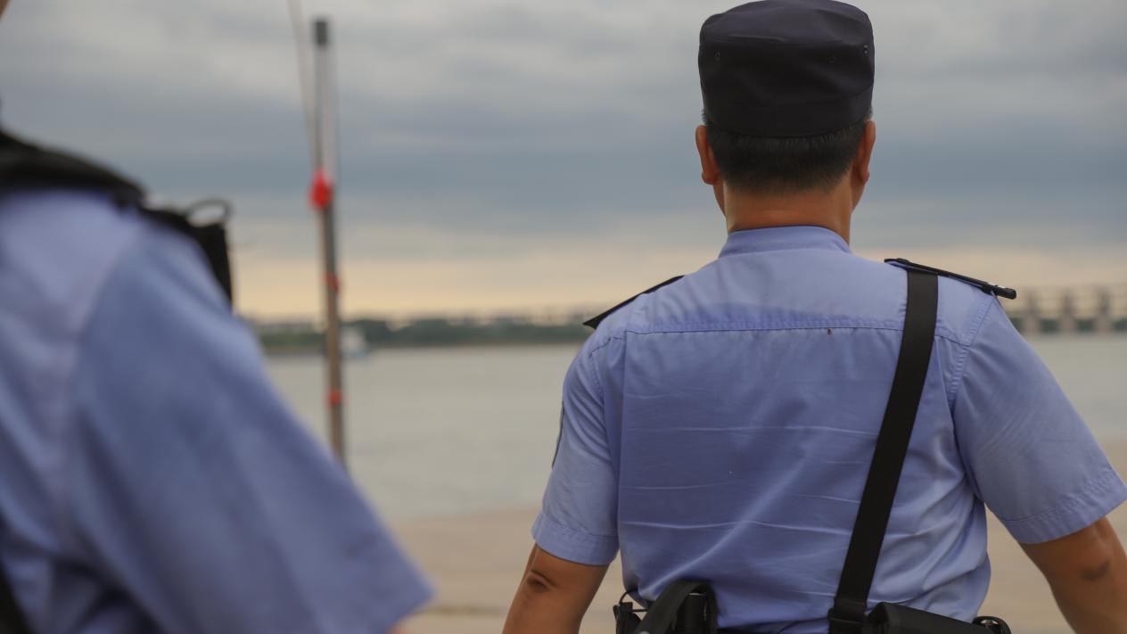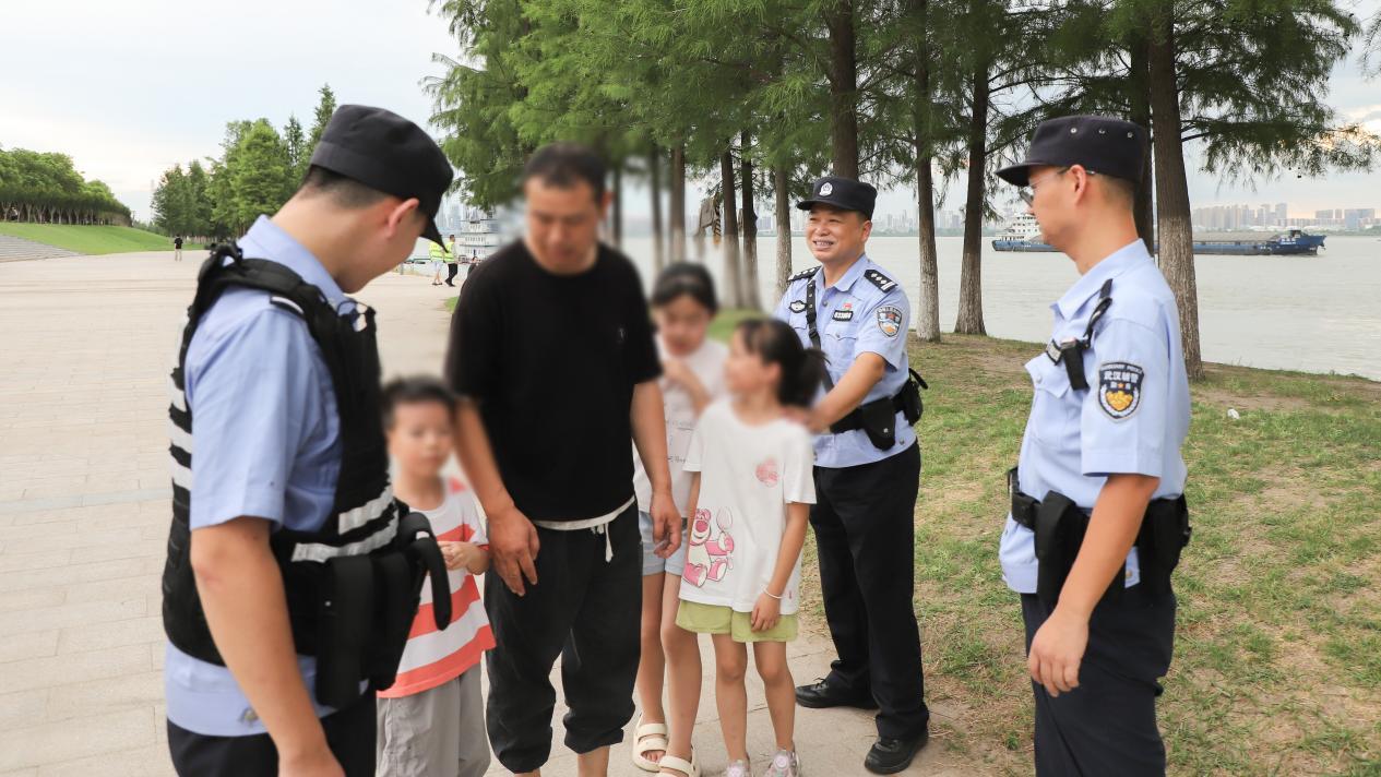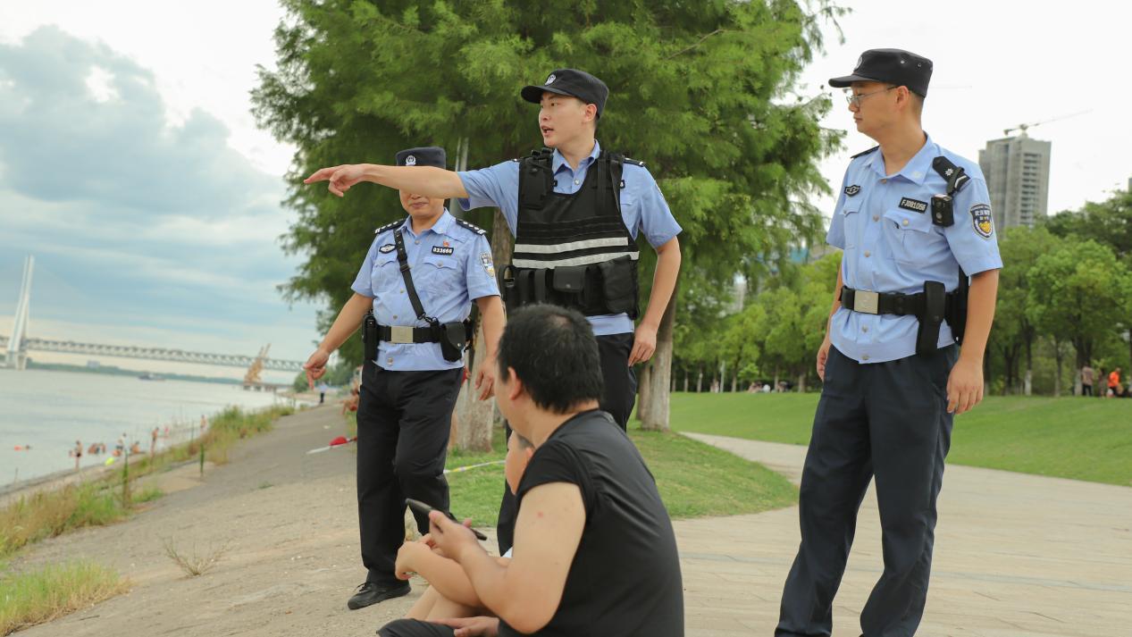 “工作日傍晚6点以后是江滩人流量的高峰,尤其是很多孩子吃完晚饭后会和家人来江边玩水,我们都会上去提醒他们注意安全。”巡逻途中,豆大的汗珠顺着民警卢卫平的脸庞滴落,他的制服也被汗水浸湿大半,但他的目光始终锐利如鹰——查看安全护栏是否松动、玩耍的孩子有无家长看护、江面有无异常……