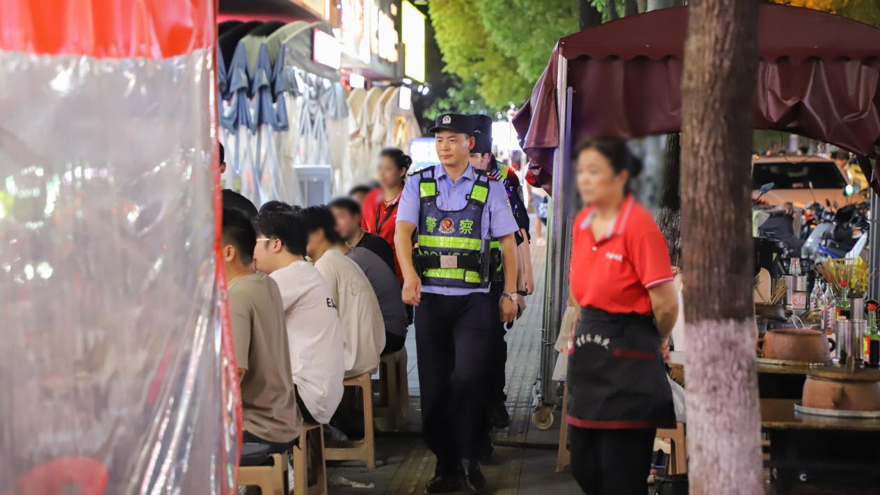 夏夜的恩施街人头攒动,恩施街步巡队(以下简称步巡队)民警李新伟和队员们穿行其中,与霓虹灯朦胧的光晕、烧烤架上升腾的炊烟与食客们的谈笑声交织成一幅充满烟火气的平安画卷。