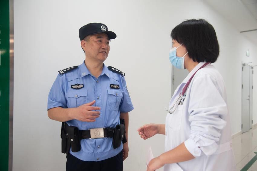 日均1500余人次的庞大流量背后,潜藏种种风险隐患。去年11月,一名精神障碍患者在诊区突发躁动,袭击了一名医生。王明洪在了解情况后,迅速协同医院安保力量将这名患者控制,并细心探望医生,快速妥善处理了这起突发事件。同年12月,在核磁共振室内,一名晚期癌痛患者情绪突然失控,砸毁了医疗设备。王明洪火速接警并前往处置,通过共情疏导化解了危机:“老师傅,我知道病痛的折磨……”体恤的话语,让患者渐渐恢复了平静。