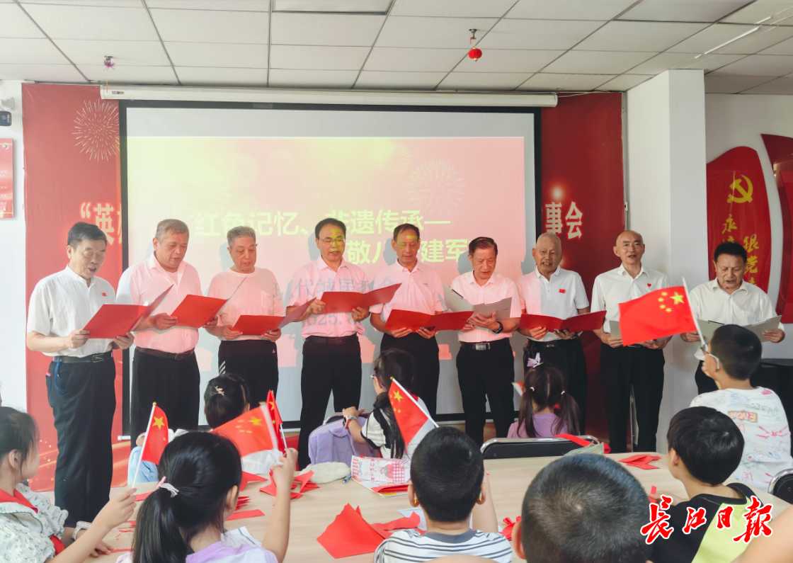 “红旗为什么能在大别山屹立28年不倒?”8月1日上午,百步亭现代城青少年空间内,一群青少年望着屏幕上六安烈士纪念塔的影像,眼中闪烁着好奇与崇敬。当天,12位退役老战士走到孩子们中间讲述革命故事,在互动体验中传承大别山精神,让八一建军节的意义在代际对话中愈发厚重。