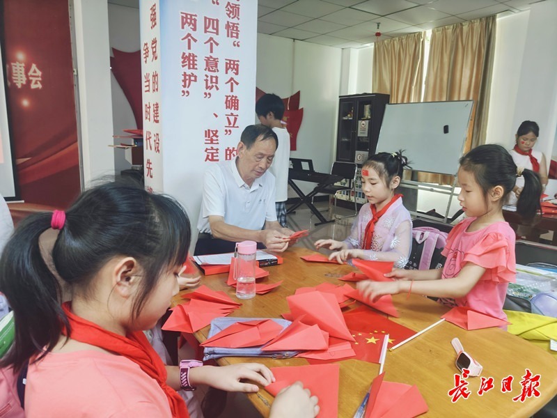 退役老战士正在教孩子们折纸。记者刘克取 摄