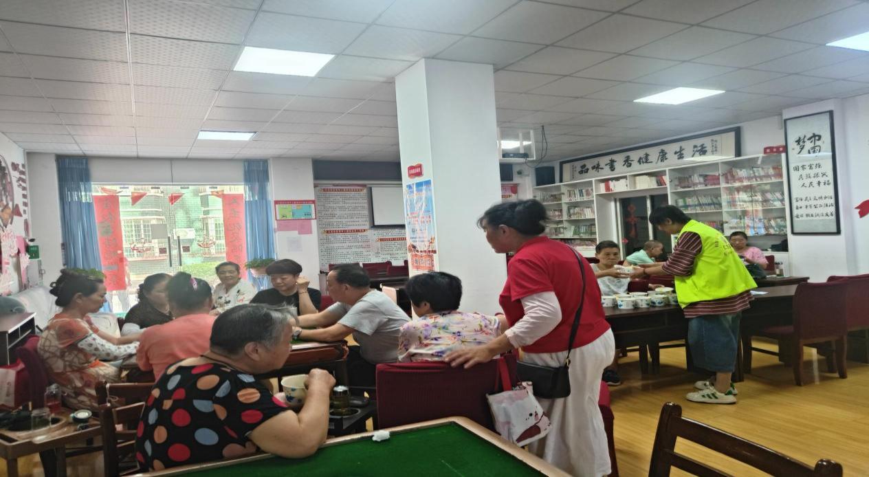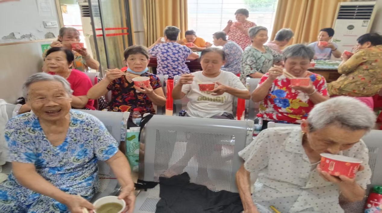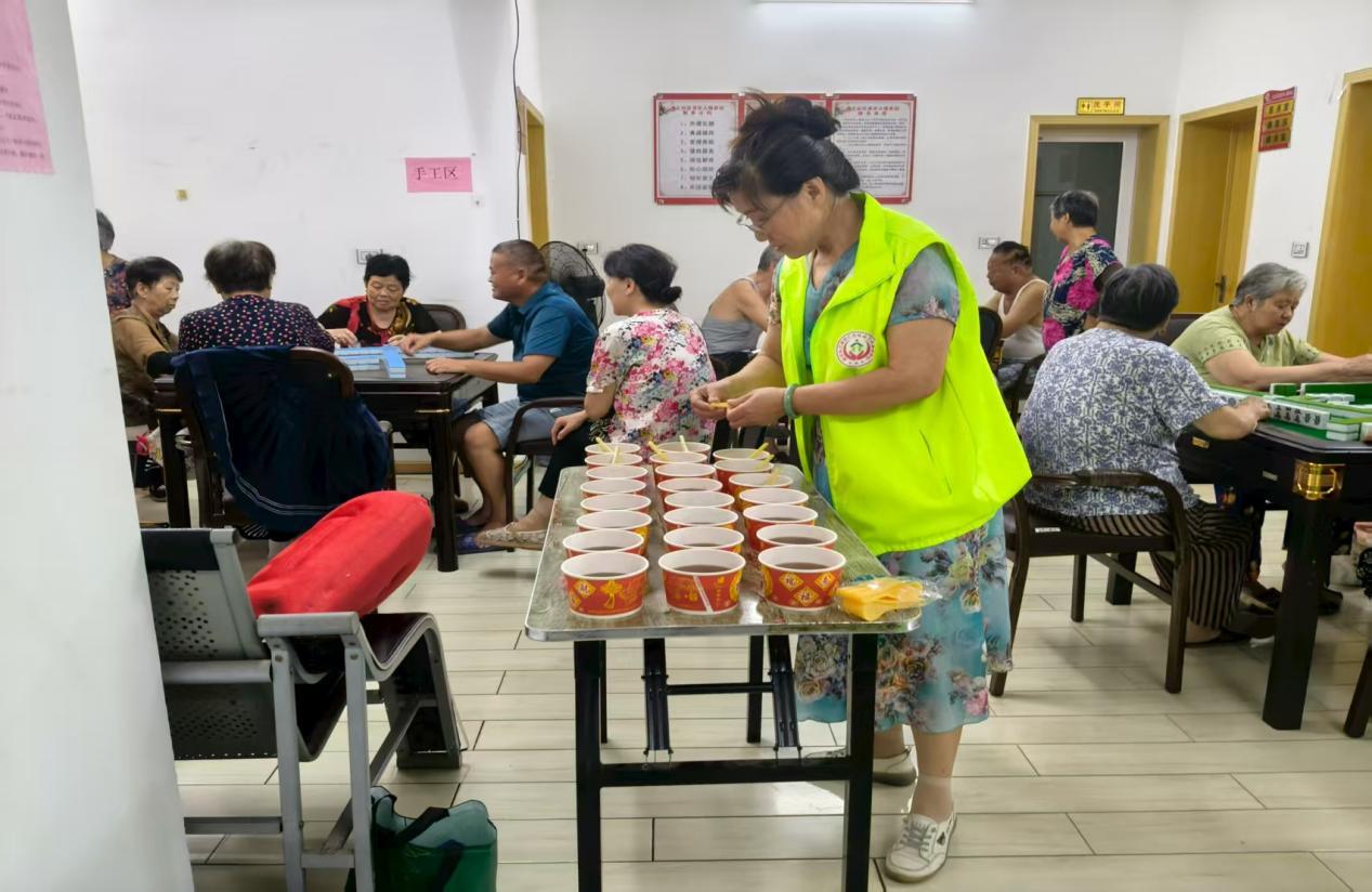 下午,老人们来到活动中心,工作人员将一碗碗清凉的绿豆汤送到他们手中。徐爹爹接过汤笑着说:“这么热的天,你们还想着我们,真是太贴心了!”李婆婆也感动地表示:“记得我不吃甜,每次都特意准备无糖的,太用心了。” 老人们边喝边和工作人员聊天,现场暖意融融。