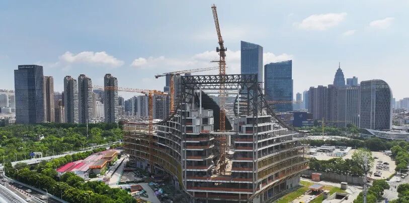 今年4月,项目主体钢结构封顶。据武汉图书馆新馆项目管理人员介绍,武汉图书馆新馆设计采用多项节能降碳技术,已通过绿色建筑三星级预评价,被列为武汉市智能建造和装配式示范项目。