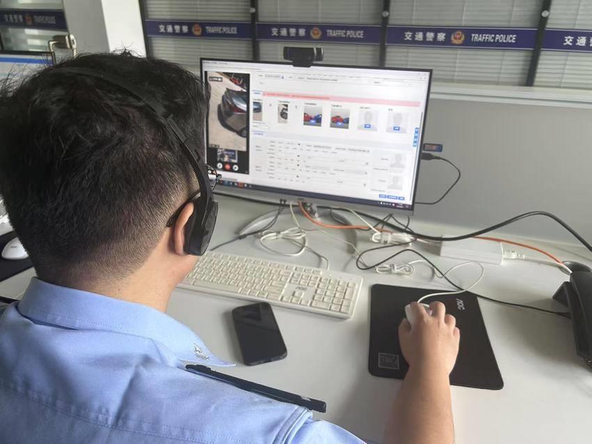 随后,江夏区公安分局交通管理大队在线事故违法处理中心民警徐忠辉和辅警陈庚立即接通了视频通话,指导王先生将手机摄像头对准车牌拍照,完成车辆识别。