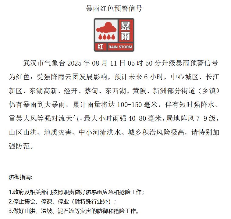 武汉市气象台8月11日6时发布