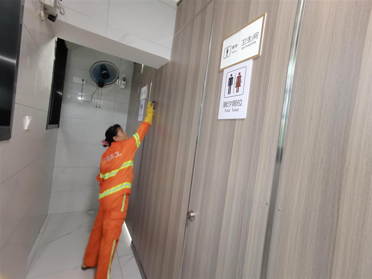公厕门上标有潮汐公厕字样