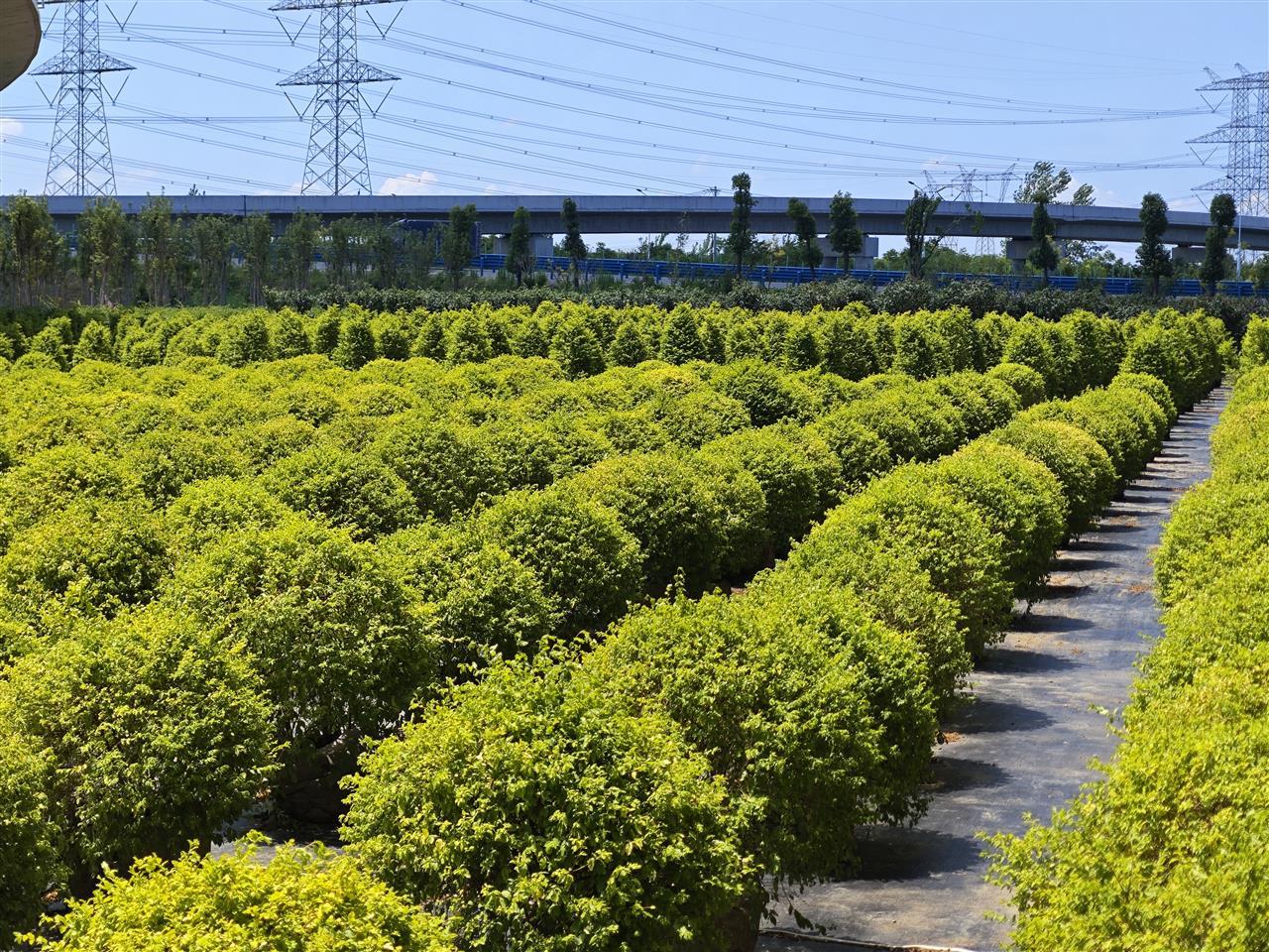 如今88亩的基地,早已不是简单的“绿化区”:标准化种植区实施集约化生产,53种苗木遍布其中;花境展示区里,亮晶女贞球、火焰南天竹等造型植物构成样板景观,形成“自主培育、定向供应、市场化运营”的闭环。“我们不仅要消除‘脏乱差’,更要让每一寸土地都产生效益。”聂天彪说道。
