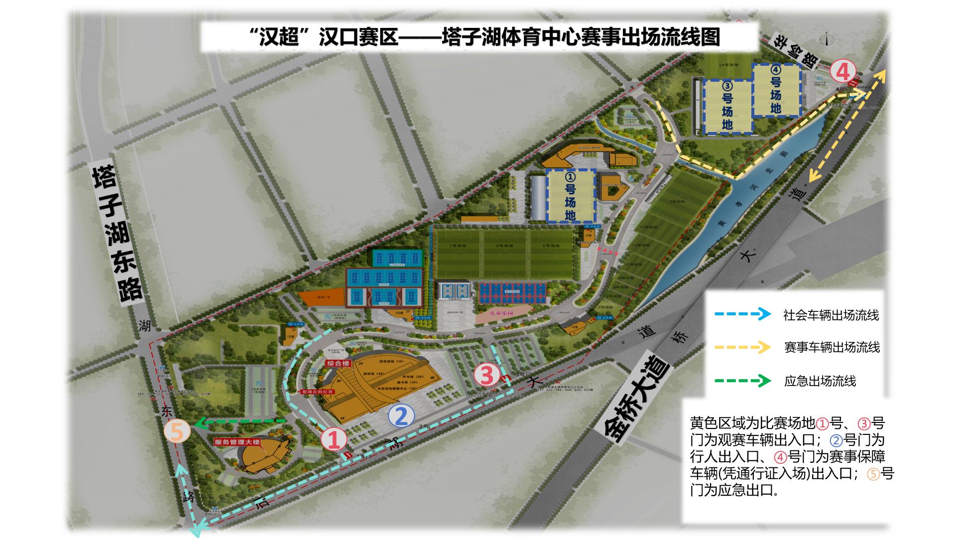 江汉方向观众:建议驾车至后湖大道,由塔子湖体育中心1号门进入。