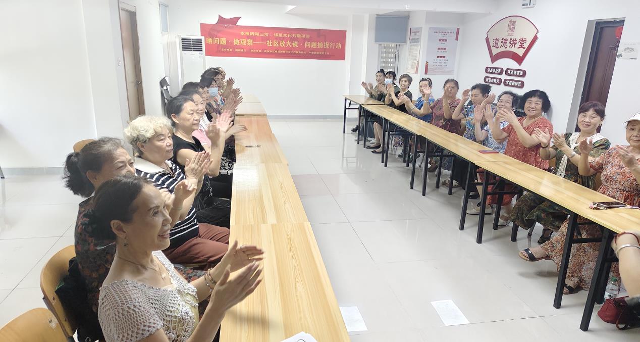活动起始阶段,在社工引导的“社区扫描”“问题捕捉”行动中,长者们揪出“分类桶间距大”“绿化带藏垃圾”“回收点闲置”“废旧物乱堆”等问题。议事会上,他们提出增设“彩虹分类指引地贴”、推广定时回收、建立积分激励等21条治理对策。为期两周的“深度扫描”共发现12处环保痛点,凝聚居民“垃圾分好类,家园更美”的责任共识。