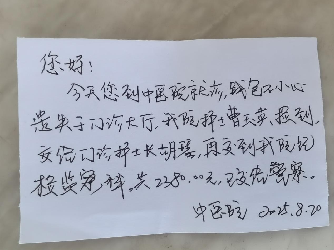 “王警官,我们医院捡到了一个钱包,能帮忙找找失主吗?”8月20日下午4时许,江夏区公安分局纸坊街纸坊派出所社区民警王光伟接到了江夏区中医院的求助电话。