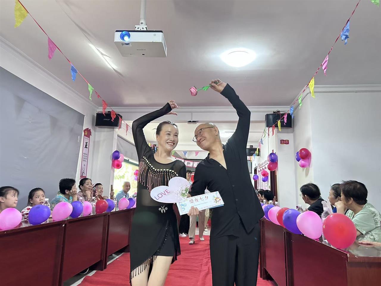 “牵牛织女渡河桥,便胜却人间无数。”活动伊始,主持人以七夕传说为引,将“相守”的文化内核与现场老夫妻的岁月故事相连。随后,社区老人巴菊英一曲《心相印手牵手》缓缓流淌,熟悉的旋律里满是岁月的温柔;徐春秀与高军怀的伦巴舞《见与不见》更添活力,灵动舞步间,银发夫妻的优雅与默契引得台下掌声不断。歌舞交织间,传统节日的浪漫与老年群体的神采相映,活动氛围悄然升温。