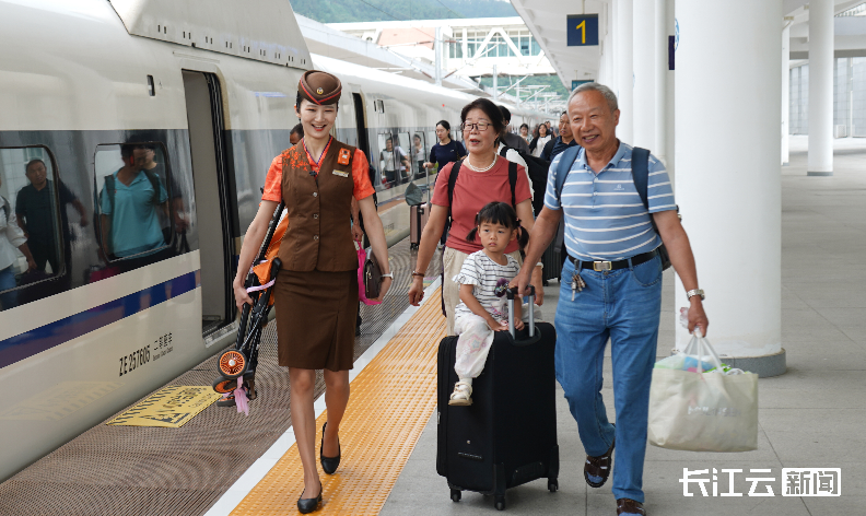 提升服务品质让旅客体验更美好。随着亲子游、避暑游等旅游客流持续走高,面对银发、儿童旅客增多等实际,武铁推行“重点旅客预约”“志愿服务”等便民利民措施,为重点旅客提供全程服务。襄阳、宜昌、信阳、漯河、平顶山等客运车站充分发挥“三峡情”“信好有您”等服务示范岗作用,增设便民药箱,提供藿香正气水、创可贴等应急药品,对重点旅客推行“一站式”预约机制,从进站到上车全程安排专人陪护,进一步提升旅客出行体验。武汉、襄阳客运段在担当列车上配备了装有针线包、充电宝、指甲剪等物品便民服务包,在车厢内设置儿童互动区,通过画笔、绘本、乖宝宝贴纸等“哄娃神器”,让儿童旅客出行更有乐趣。同时针对旅游列车,在列车广播内容中新增“时事新闻、旅行常识、