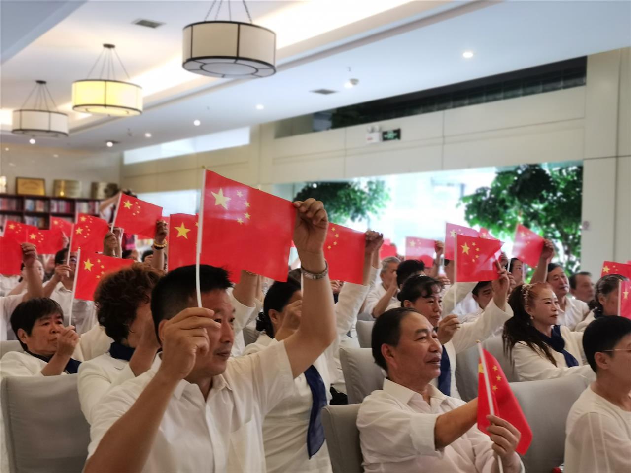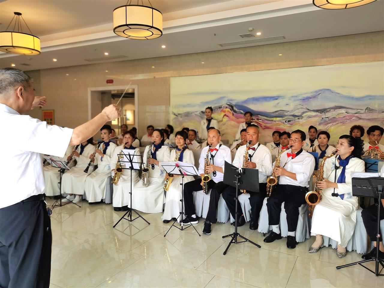 艺术团乐队指挥肖建方有力地挥舞着双手,在他的指挥下,现场人们不约而同地随着乐声跟唱,歌声嘹亮、气氛热烈,洋溢着浓厚的爱国热情。“在这个特殊的历史节点,能够以《歌唱祖国》《欢迎进行曲》《走向复兴》这三首经典曲目表达对祖国的热爱与敬意,我们乐队感到无比自豪和荣耀。”肖建方感慨地说道。