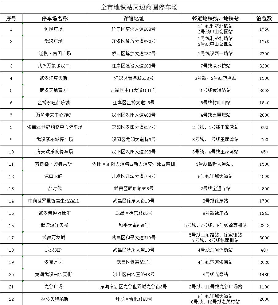 体育东路(太子湖路至神龙大道)路段、太子湖路(东风大道至芳草路)路段、车城北路(东风大道至体育东路)路段、体育路(东风大道至太子湖路、车城北路至神龙大道)路段、体育北路(体育路至万达停车场进出口)、宁康路(神龙大道至车城北路)路段双向禁止机动车停放。