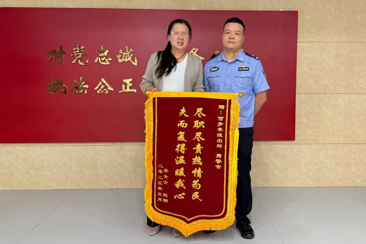 5月22日清晨,百步亭社区居民李女士骑着电动车送女儿上学,由于当天雨很大,便中途停下车来给女儿整理雨衣,待女儿入校后,李女士才发现手机已经丢失。“警察同志,手机的资料对我很重要,丢失就麻烦了!”几次寻找无果后,李女士拨通了报警电话。百步亭派出所民警周永锋和辅警叶超、邱龙接警后迅速响应,根据李女士的回忆,调看沿路监控录像后,判断很可能是在她给女儿整理雨衣时不慎丢失手机。