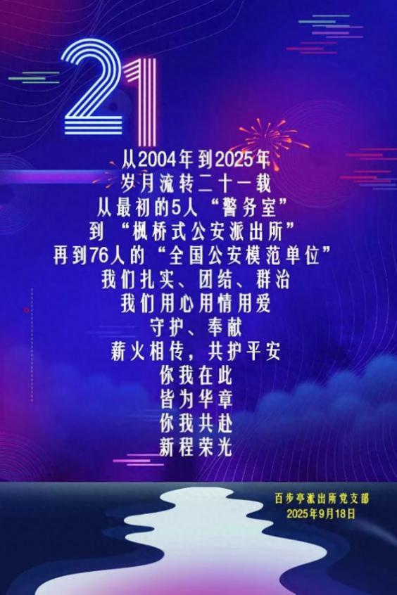 回望过往,一路走来,百步亭派出所全体民辅警始终秉持人民公安为人民的从警初心,牢记走好党的群众路线的时代使命,保持永不懈怠的奋进姿态,不断为探索新时代主动警务、预防警务工作交出一份党和人民满意的平安答卷。