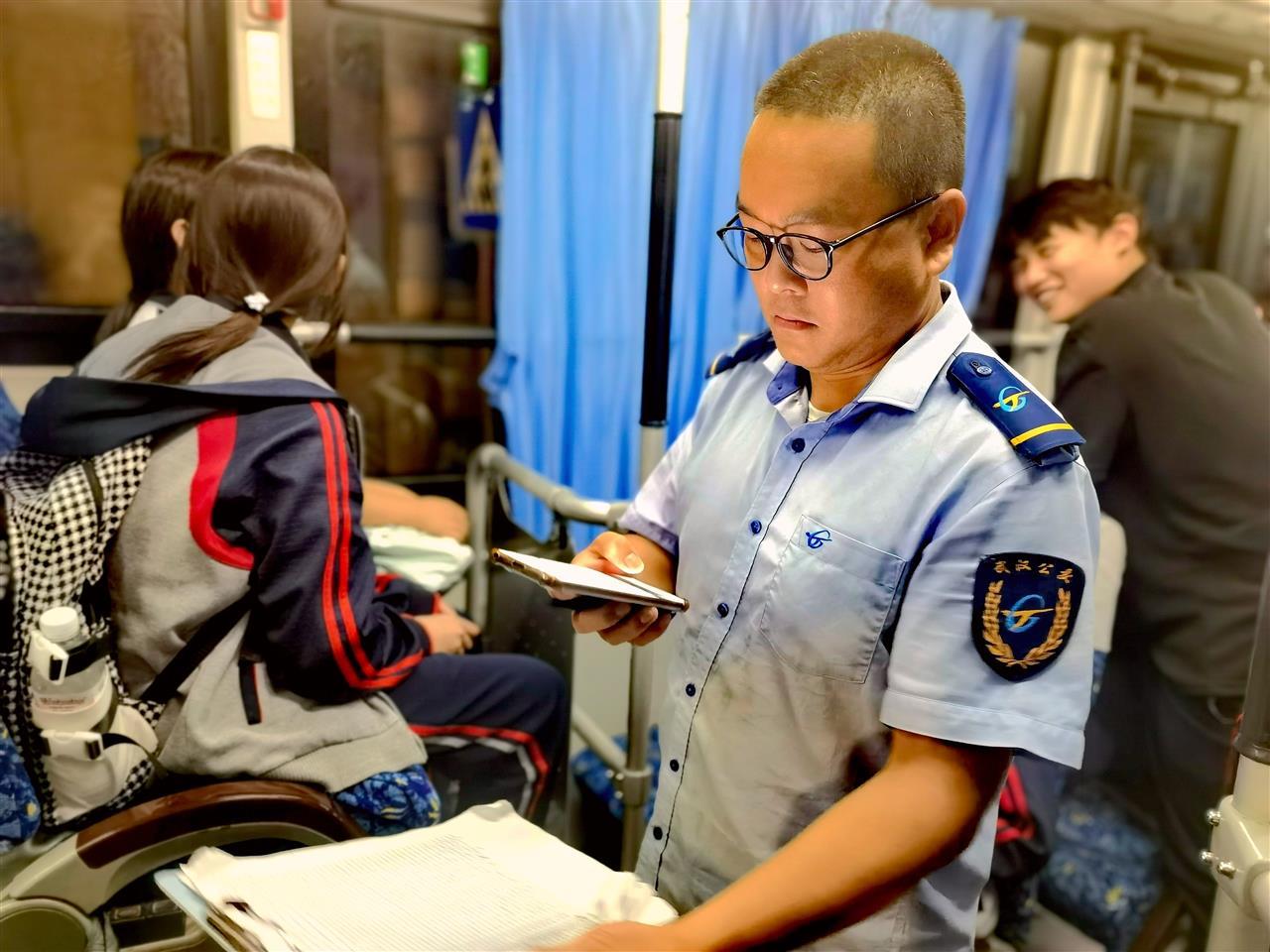 “方叔好!”不一会儿,30多名学生走出校门,陆续跑进车厢,熟悉地跟方波打招呼。“别冲太快了,有序上车”方波一边微笑着回应,一边在车厢里穿梭,对着已上车孩子的姓名在签到表上打勾。过一会儿,他会把签到表拍照发到家长交流群里去,让大人们放心。