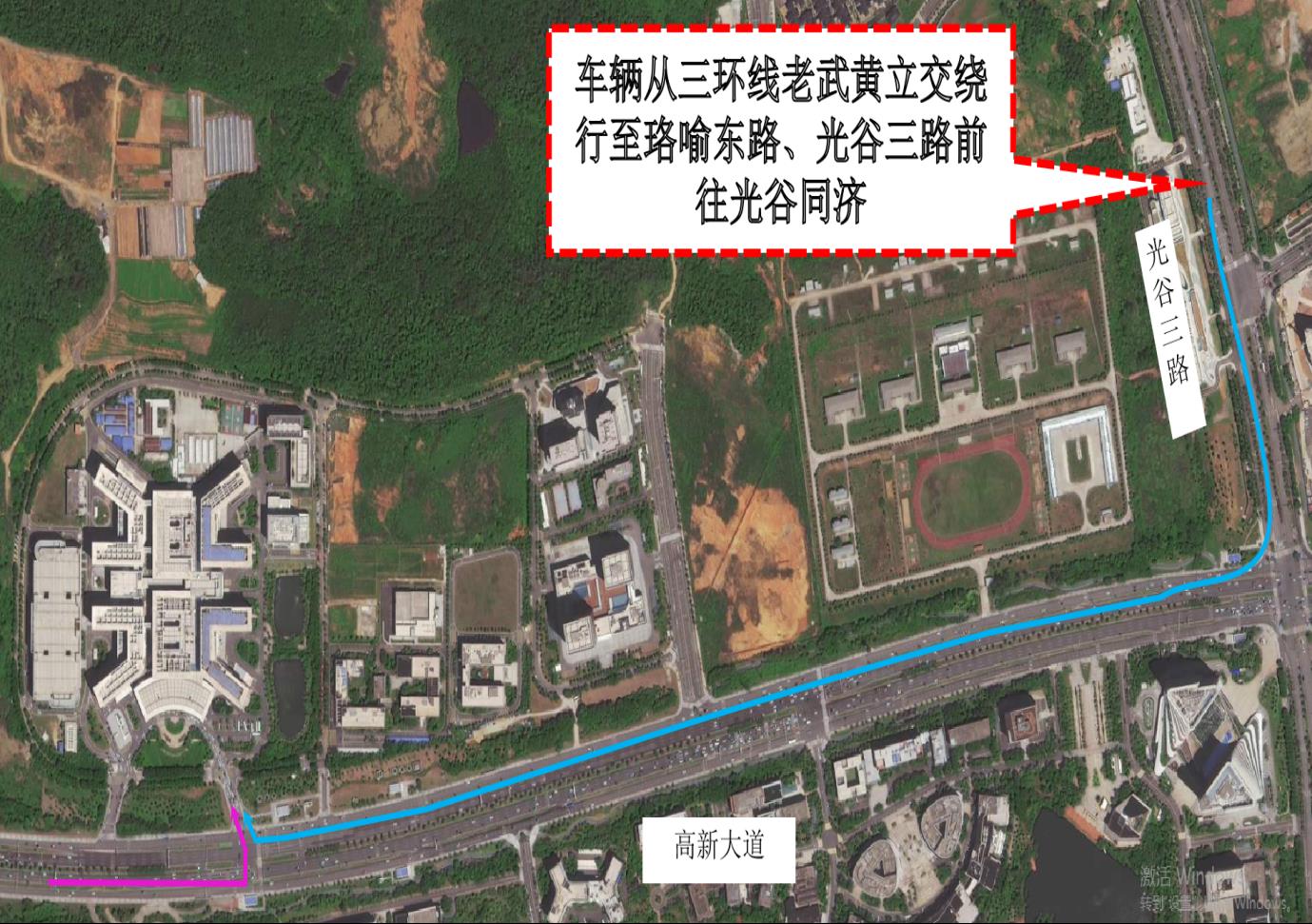 四、需通行上述路段的机动车,出城方向可经三环线、森林大道、花山大道或光谷三路、高新二路、光谷六路、光谷七路等相关道路绕行,进城方向可经光谷六路、光谷七路、九峰一路、光谷三路、森林大道等相关道路绕行。