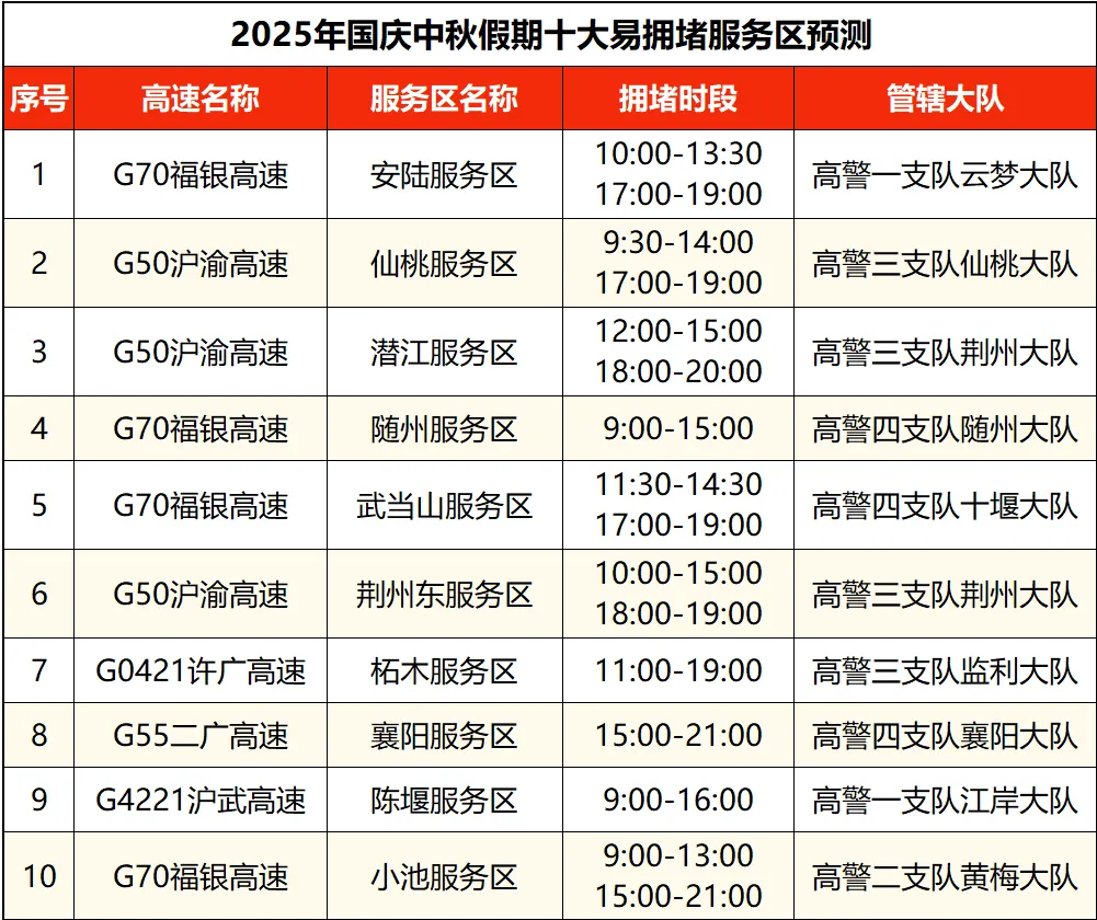 ▲假期十大易拥堵服务区预测