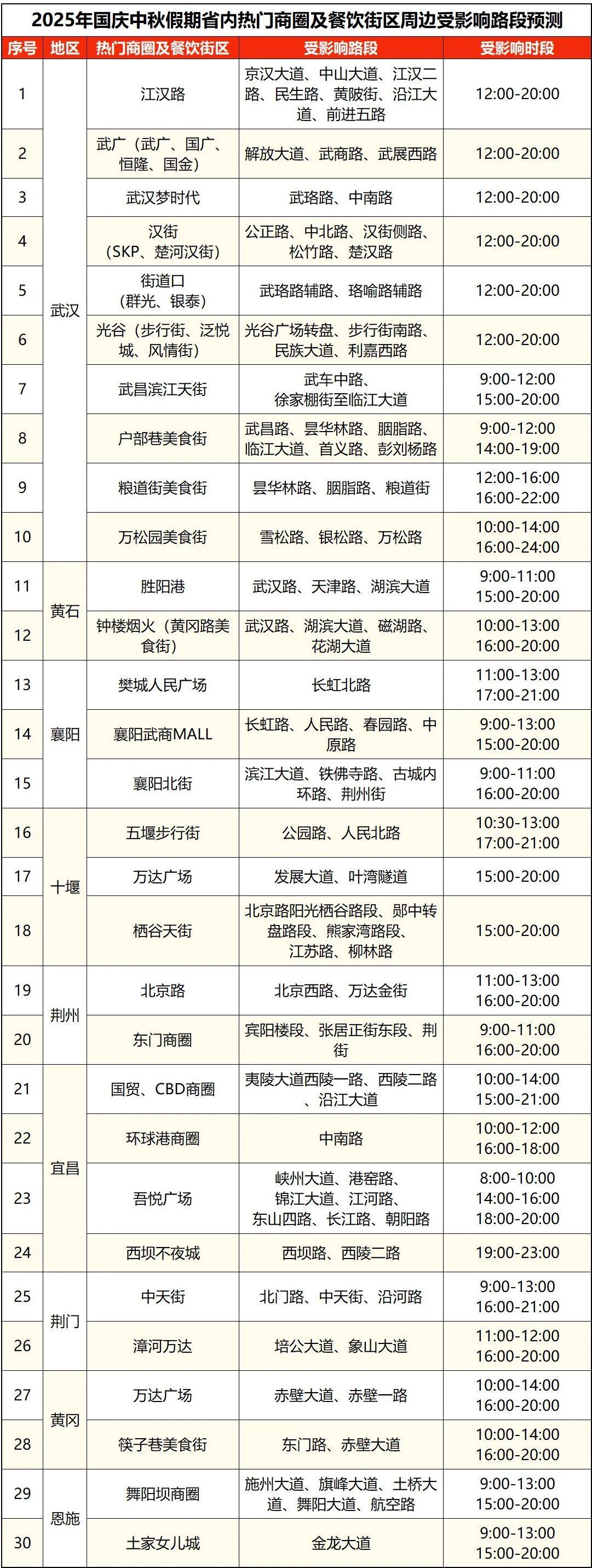 ▲假期省内热门商圈及餐饮街区周边受影响路段预测