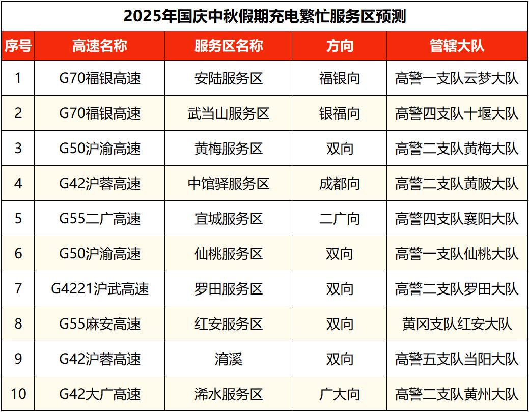 ▲假期充电繁忙服务区预测