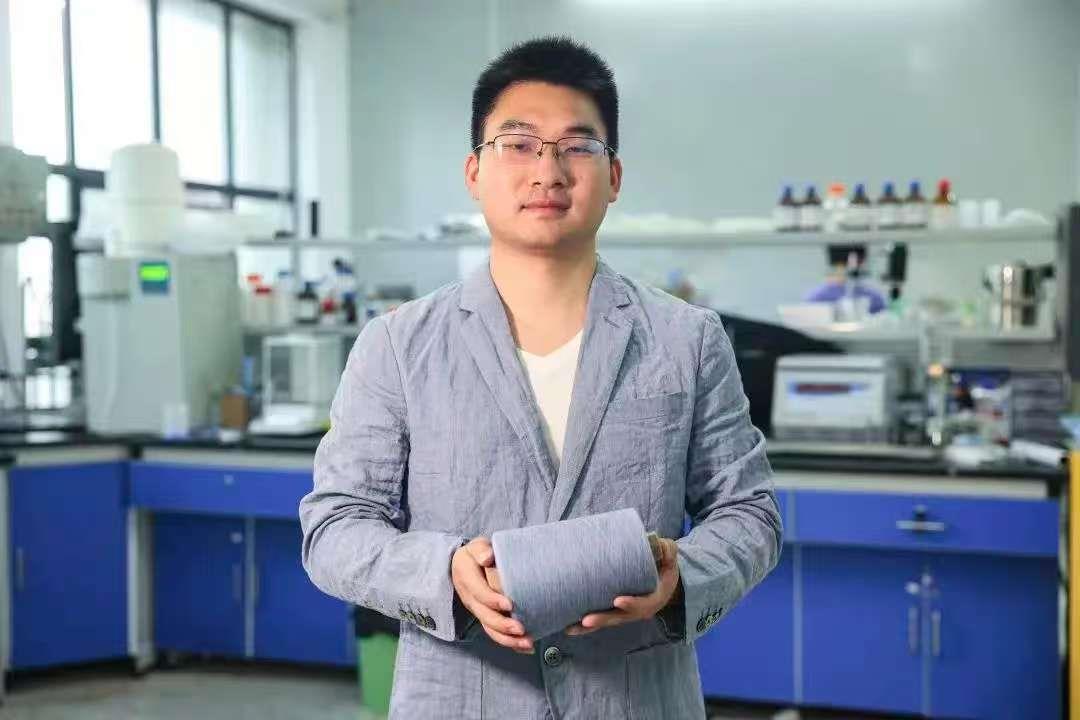 项目参与人徐傲,穿着玄武岩防护面料展示 武汉纺织大学供图
