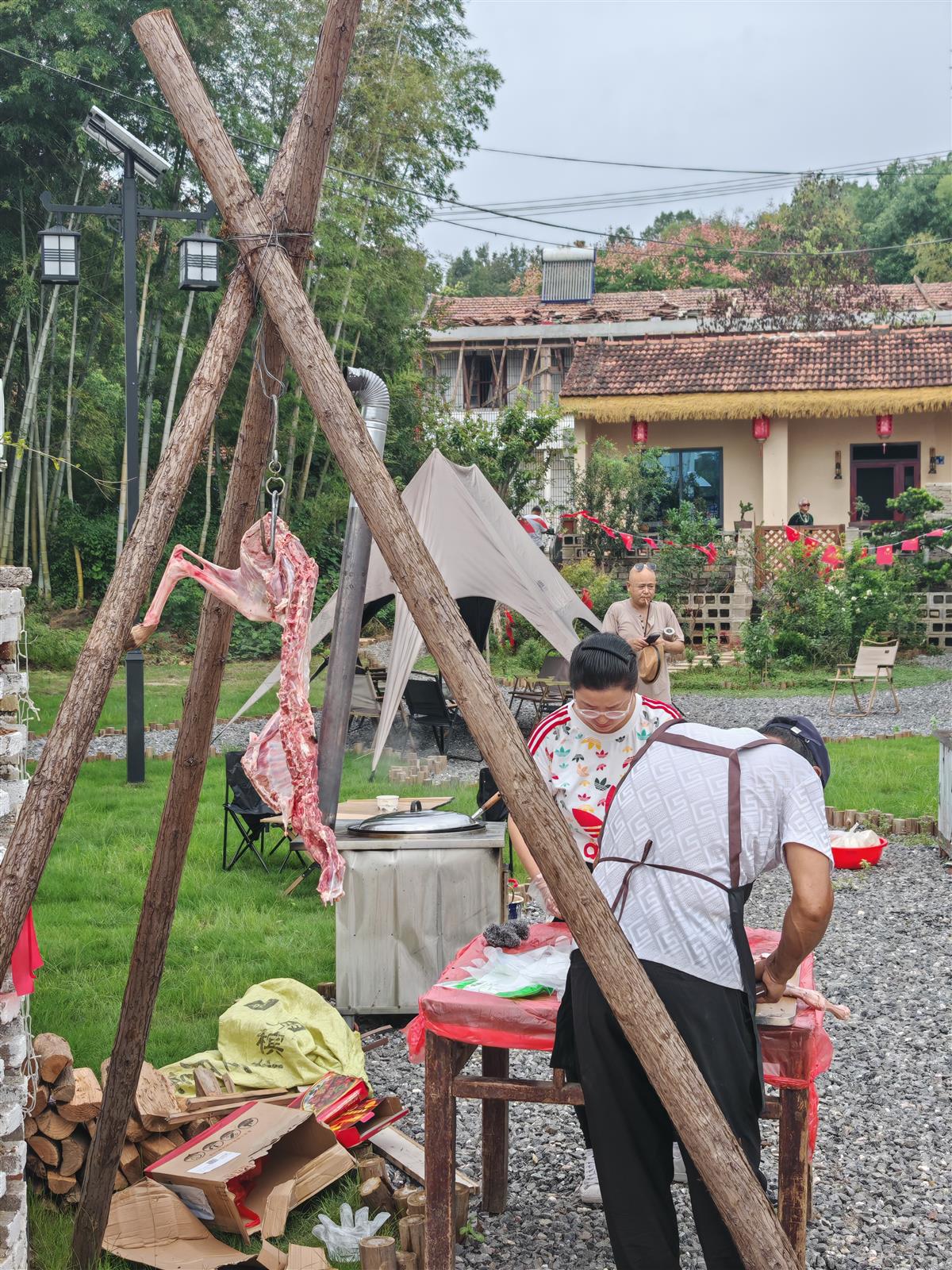 福利:羊肉烧烤、土鸡汤等全程免费供应