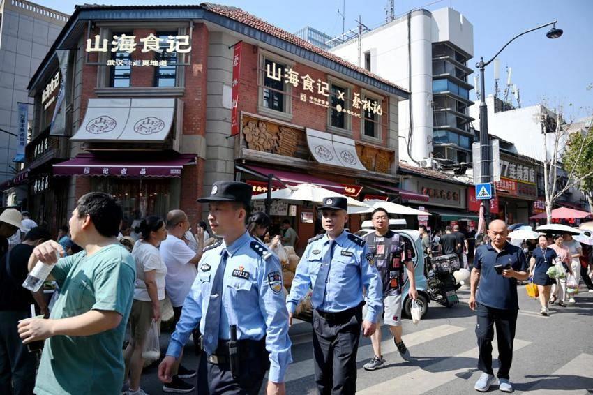 为应对节日里的人流车流,江岸公安把警力撒到了街头巷尾,反巡特大队和各派出所联动,设了7条武装巡逻线、70个巡控点,民警的脚步从巴公房子的百年穹顶,走到八七会议会址纪念馆的青砖黛瓦,再钻进菜市场、小吃街的烟火气里。