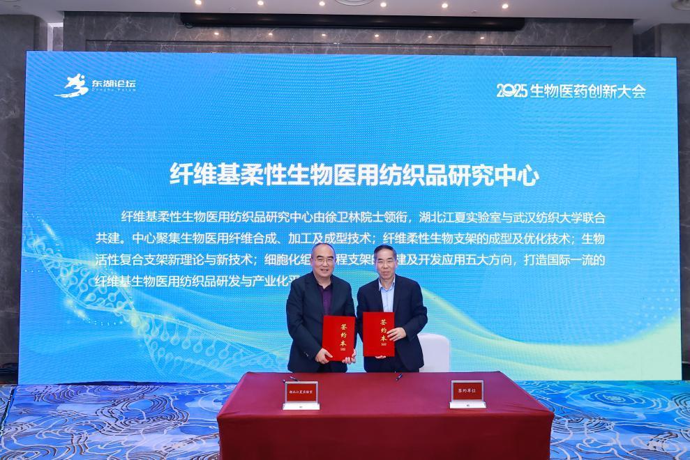 作为本次大会的核心环节,湖北江夏实验室现场发布六大共建技术平台并举行签约仪式:与华中农业大学金梅林院士团队共建“全健康前沿交叉创新中心”,聚焦病源预警检测及宠物创新药开发等五大方向;联合武汉纺织大学徐卫林院士团队成立“纤维基柔性医用生物纺织品研究中心”,突破生物医用材料关键技术。