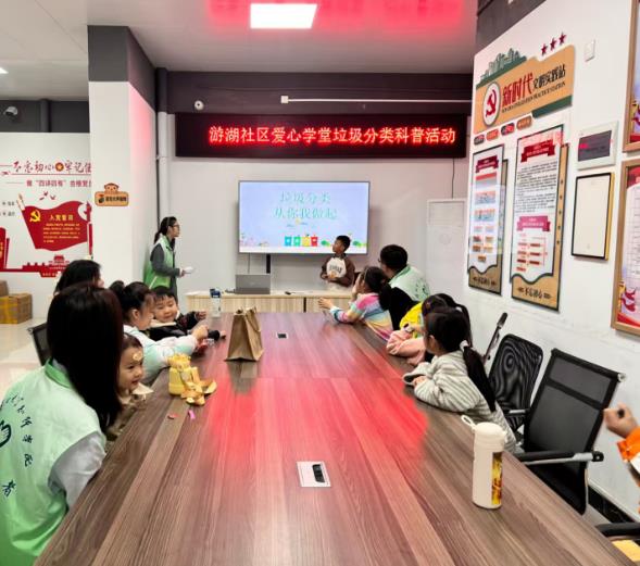 11月1日,武汉长江新区游湖社区联合湖北大学知行学院经济与管理学院,在社区“爱心学堂”开展青少年垃圾分类科普课堂,并同步启动“清洁家园”志愿服务活动,让绿色环保理念扎根童心,用青春力量扮靓社区。