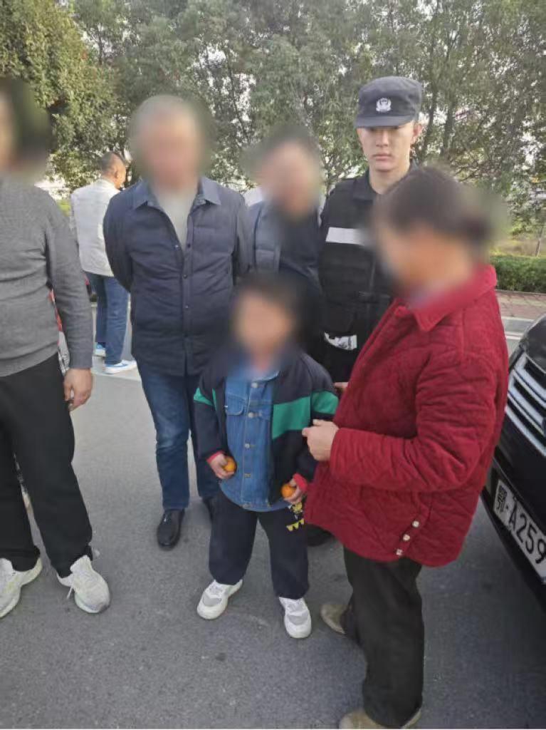 约20分钟后,男孩的奶奶心急如焚地赶到现场。看到孙子在两名辅警的悉心照看下安然无恙,老人激动地说道:“就转头买个东西的工夫,孩子就不见了,我正到处找,找得快急哭了,多亏幼儿园老师打电话说孩子在你们这儿!”她紧紧握着辅警的手连声道谢。在仔细核实家属身份信息后,陶盖、刘奕将男孩安全交还至奶奶手中。