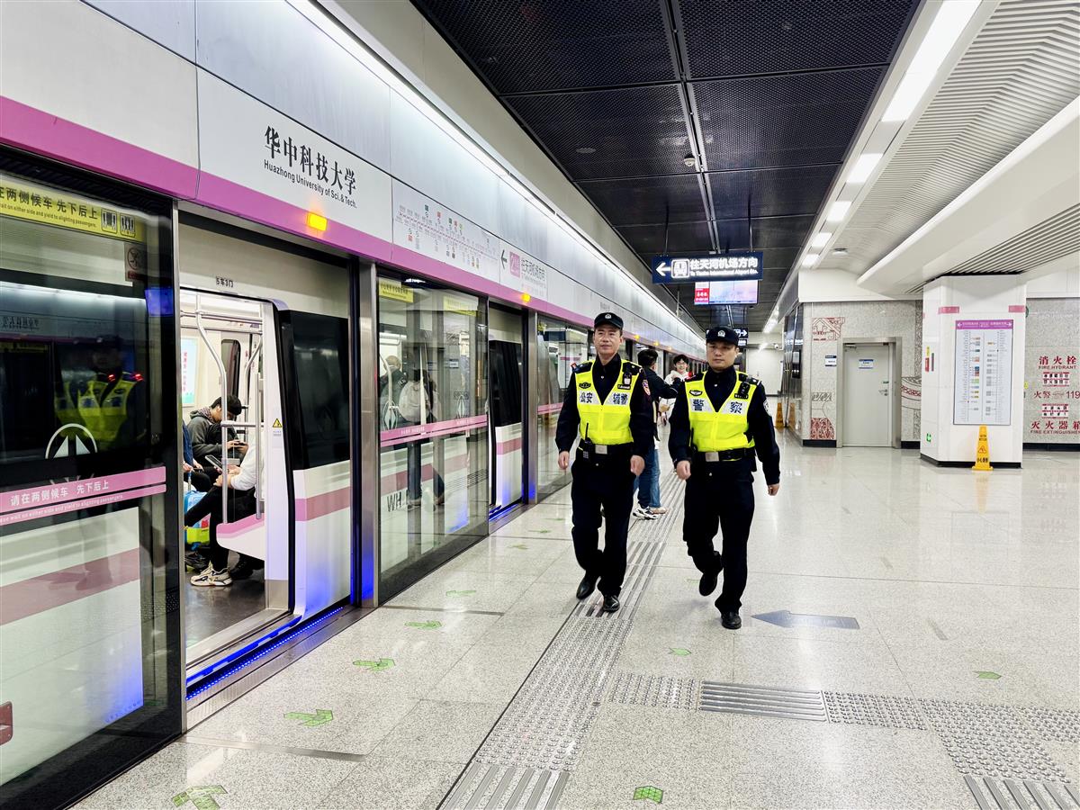 赛事当天,武汉轨道公安将在常态勤务的基础上,对临近赛道的13个地铁重点站叠加投入警力,持续强化客流疏导、秩序维护和服务乘客等工作。按照“守住点、盯住线、保住面”的要求,采取定点值守和动态巡防相结合的方式,最大程度提高见警率、管事率。在可能形成“大客流”的重点站,提前与地铁运营公司搞好对接协调,布设硬质隔离设施,规范进出闸机通道,防止出现乘客拥挤、滞留情况。