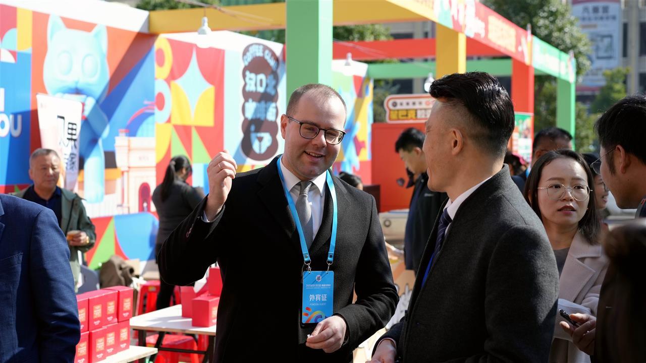 本届汉交会于11月19日至23日在汉口北国际贸易城举办,咖啡茶饮展作为九大展区之一,吸引了国内云南、非洲卢旺达等多地的展商入驻。极目新闻记者在现场看到,云南普洱、孟连、宁洱等地咖啡展商组团秀特色,除了摆放着各种咖啡饮品、普洱茶,还安排了身着民族服饰的演员登台表演舞蹈、演奏民乐,悠扬的葫芦丝声与浓郁的咖香交织,不少市民游客和多国驻华大使等外国嘉宾驻足观看。