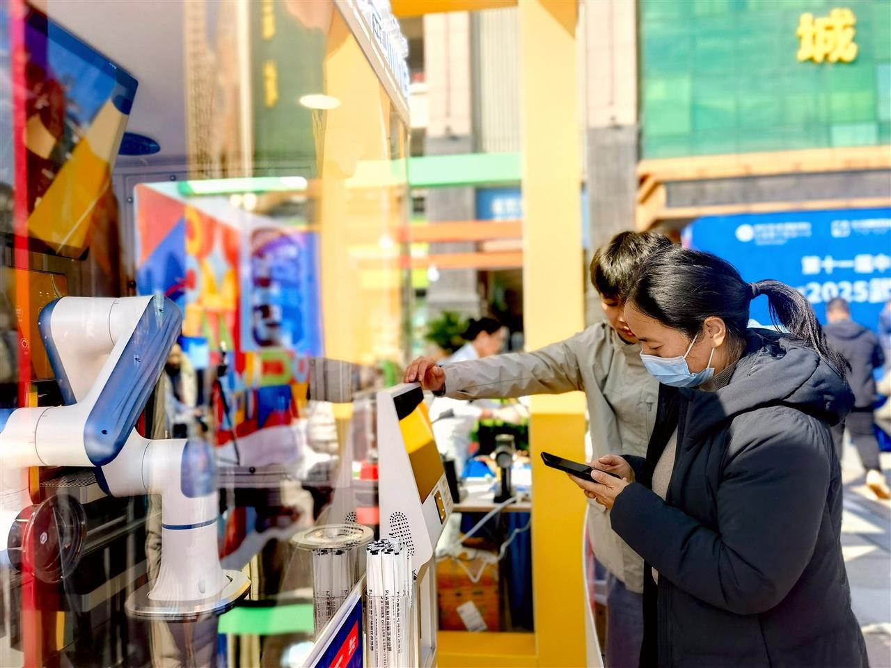 “刚扫码下单,一分半钟就拿到手了。这杯拿铁奶泡绵密,入口还有股淡淡的坚果香,味道不错。”11月20日上午,在2025武汉(汉口北)商品交易会酒店用品城咖啡茶饮展现场,市民何先生刚从“灵犀”咖啡机器人取餐口接过的饮品,喝了一口后,感觉蛮好。