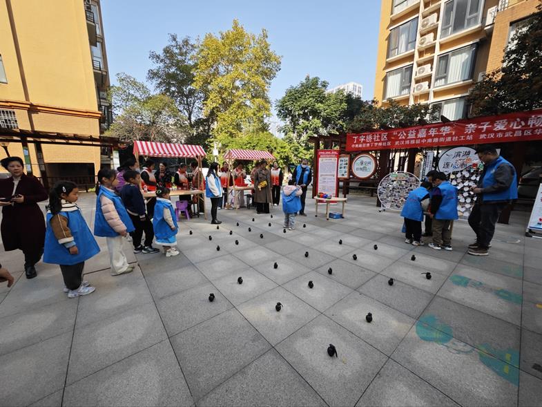 11月23日,武汉市武昌区中南路街道丁字桥社区联合武汉博雅社会工作服务中心驻中南路街道社工站、武汉市武昌区华仁社会工作服务中心,在滨湖名都城小区广场共同举办“社区公益嘉年华,亲子爱心畅游行”主题活动。活动融合公益慈善、科普、环保理念,吸引辖区15组家庭踊跃参与。