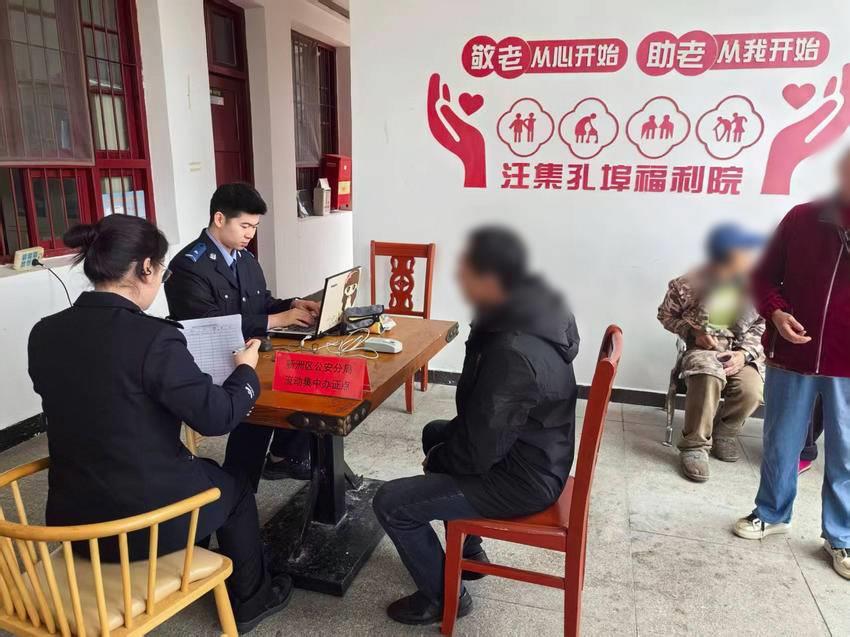 针对老年群体和行动不便人群集中的养老机构和特殊疗养院,新洲公安也采取“上门集中办理”的方式,将温情与关怀一并送上。10月23日上午,邾城夕阳红养老院里,民警半蹲为轮椅上的老人理银发:“奶奶,看镜头笑一笑,您今天真精神。”11月15日,集中办证服务又来到旧街卫尔康疗养院,民警为手指干燥粗糙的老人反复涂护手霜,再采集指纹。这种上门集中办理的方式不仅为70余名行动不便老人办理了业务,更让缺乏陪伴的老人们倍感亲切。