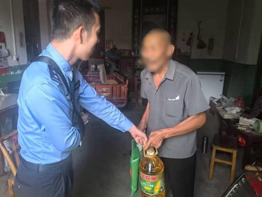 10月1日,分局治安大队民警金湛和同事提着大米、食用油走进凤凰镇四屋湾王奶奶家。“奶奶,身子还好吧!”金湛俯身问候中风后行动不便的王奶奶,这场看望源于9月29日的紧急上门:得知王奶奶身份证过期将影响生活补助领取,金湛当即带领辅警们扛着设备赶到,在老人家中搭建“临时摄影棚”。董芳蹲身理平老人衣领,金湛半跪调整相机角度,最终拍出合格证件照,解了燃眉之急。