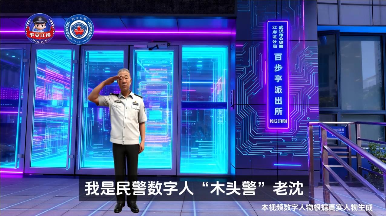 “凡是谈钱的事,一定要多留个心眼,立即中断联系!”今年9月底,百步亭派出所创新运用AI技术,以民警沈胜文为原型,推出人工智能数字人宣传员,打造“数字人木头警老沈”,利用数字人开展反诈骗宣传。