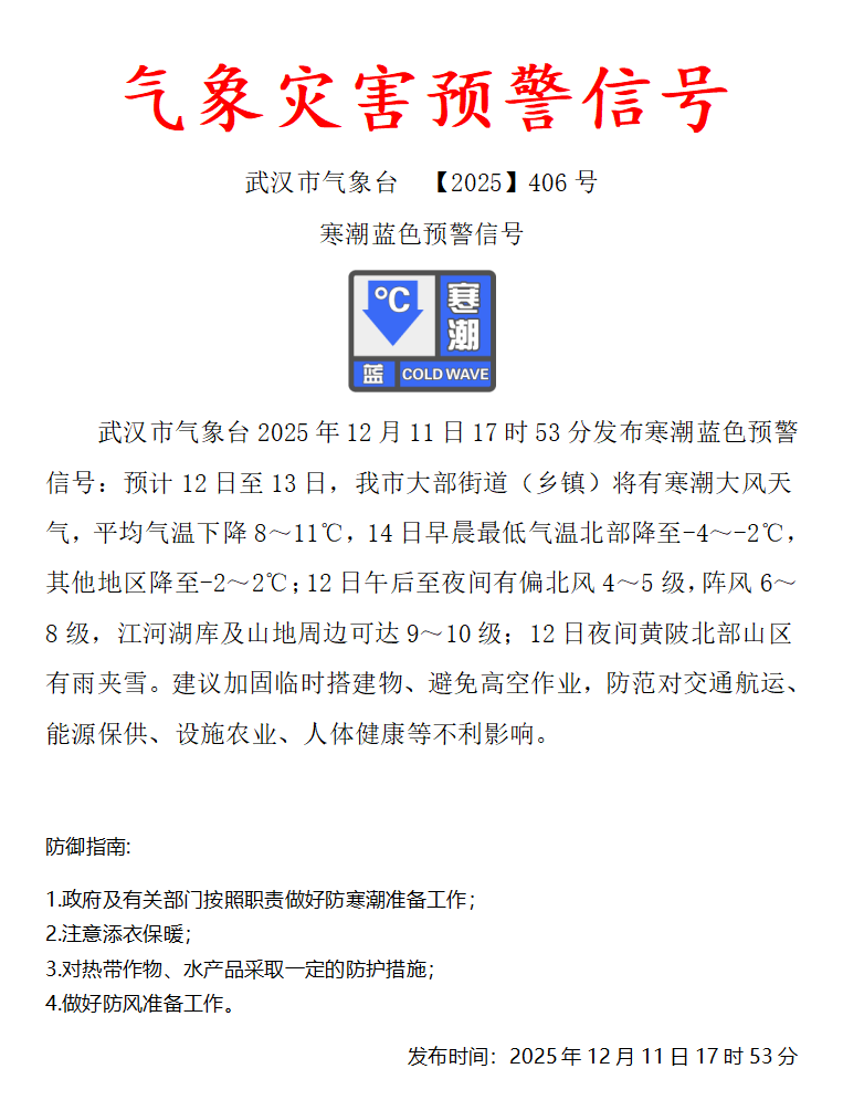 今天晚上:阴天有小雨,黄陂北部山区有雨夹雪