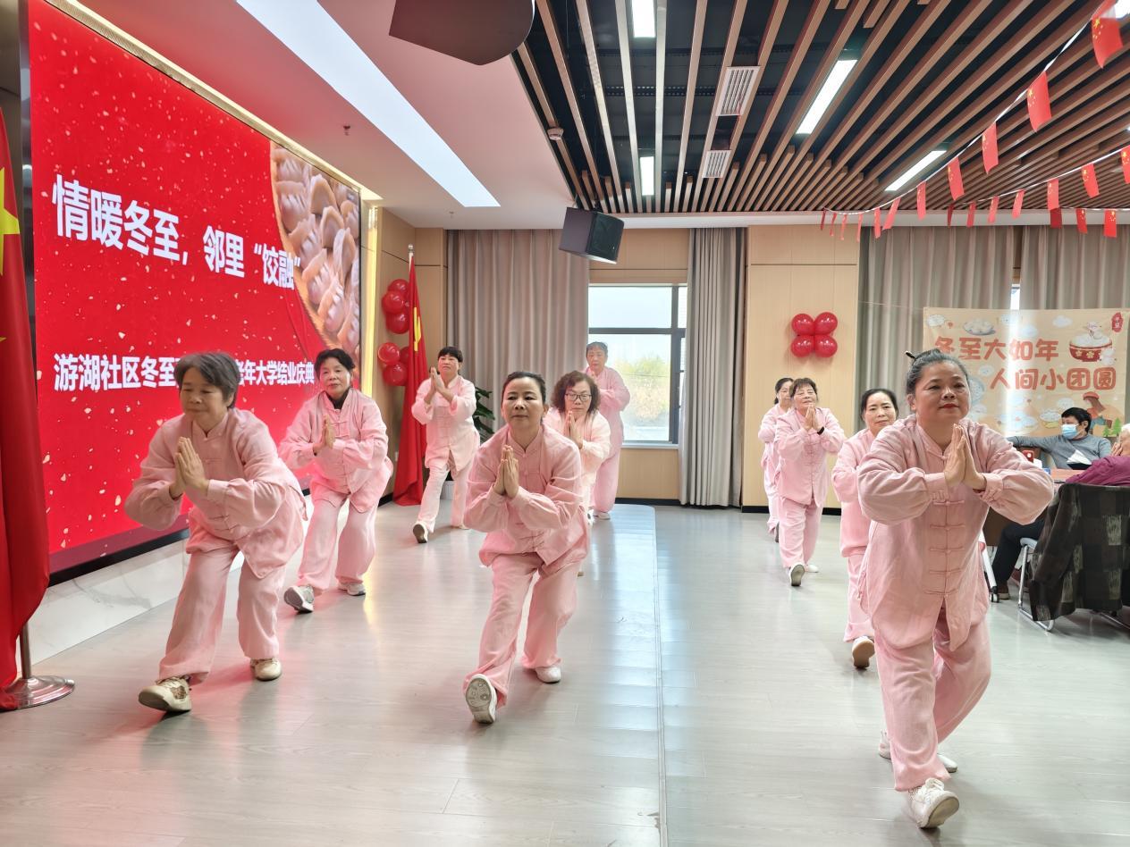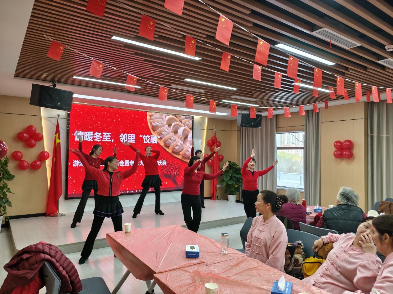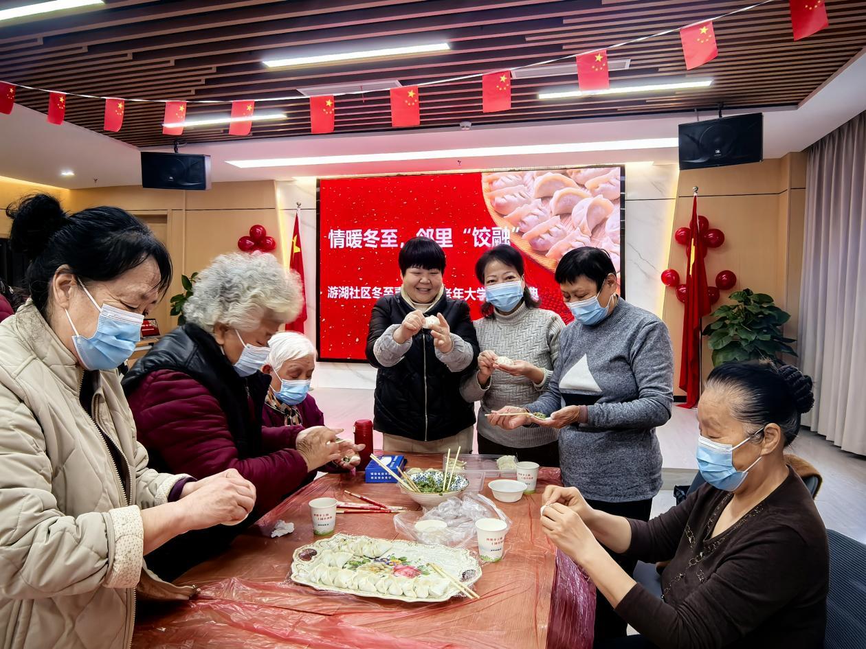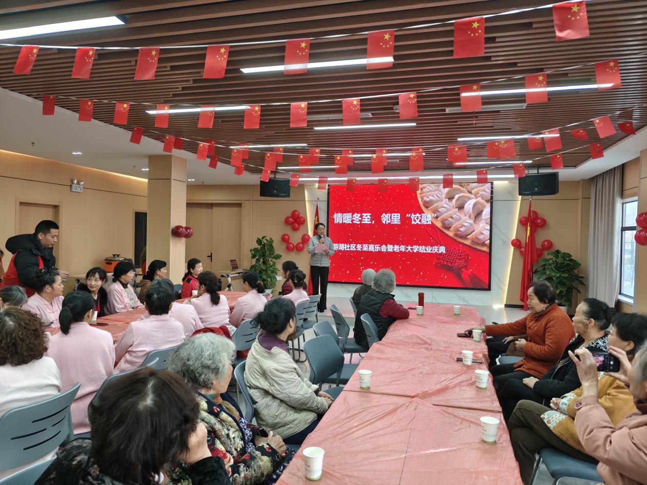 冬至大如年,人间小团圆。12月19日,武汉长江新区游湖社区党员群众服务中心二楼活动室内暖意融融,饺子香与歌声交织。游湖社区策划的“情暖冬至,邻里‘饺融’”冬至喜乐会暨老年大学结业庆典在此举办,辖区空巢老人、独居老人、老年大学学员及社区工作人员、志愿者齐聚,欢庆佳节、共享喜悦。