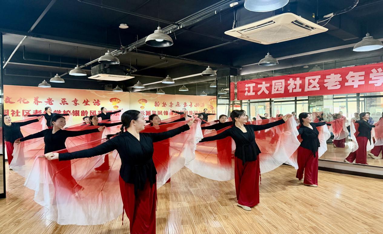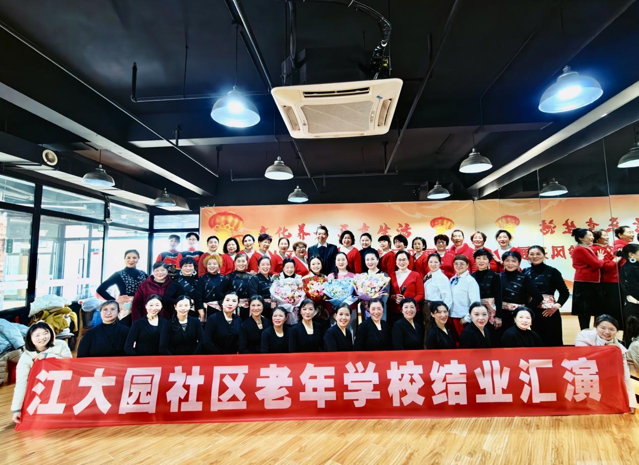 台上学员全情投入,台下观众掌声雷动。此次结业汇演不仅为老年朋友们搭建了展示自我的舞台,更丰富了社区老年人的精神文化生活,彰显了江大园社区老年学校“老有所学、老有所乐、老有所为”的办学宗旨。下一步,江大园社区老年学校将继续优化课程设置,提升教学质量,为社区老年群体提供更加优质的学习与活动平台,让银龄生活绽放更多绚丽光彩,让老有所学的幸福底色愈发鲜明,为构建和谐温馨的社区文化氛围添砖加瓦。