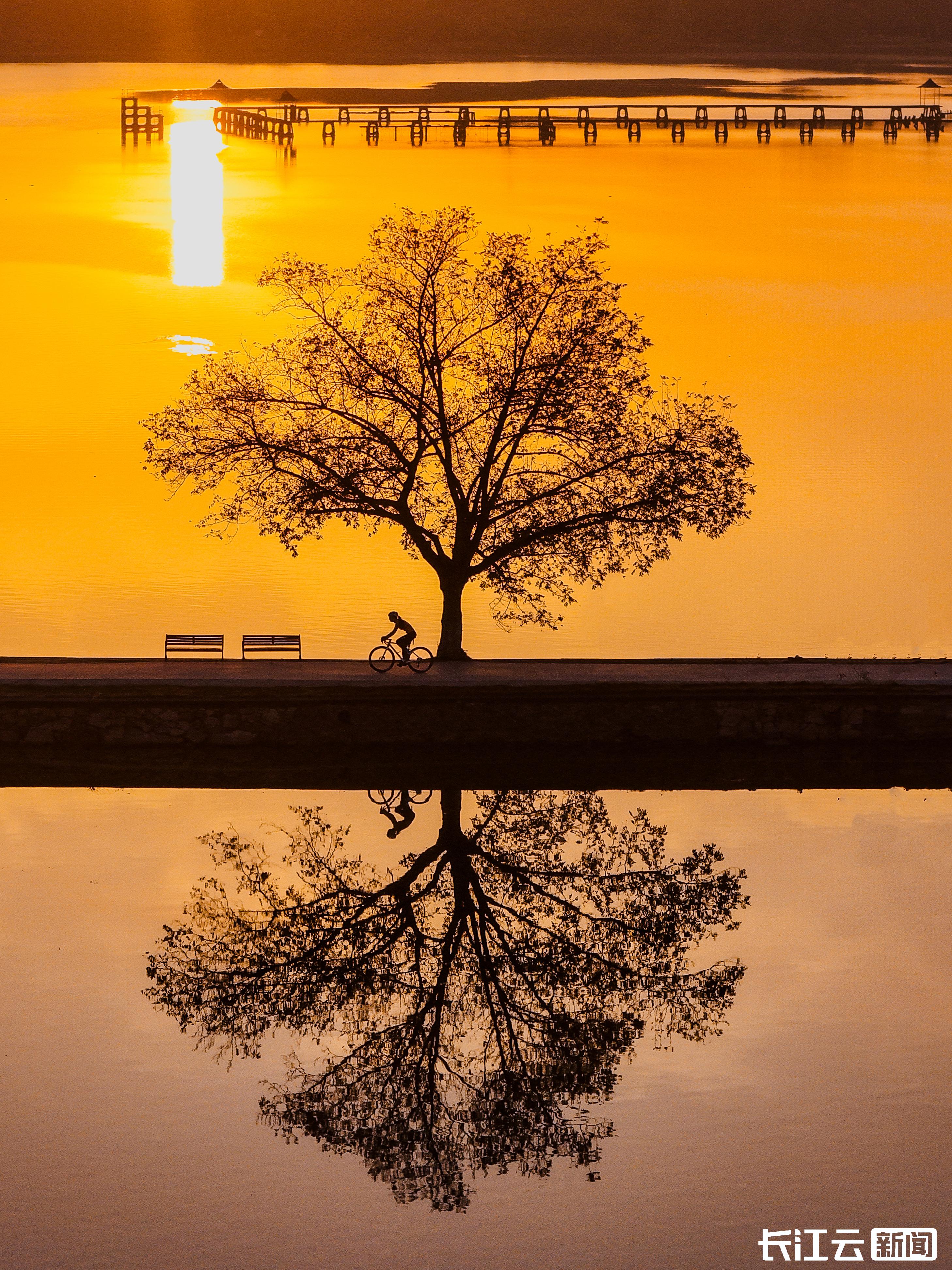 在他镜头里,武汉光影藏着诸多动人细节。东湖友格岛的日出最是治愈。夏天“橘子海”中,朝阳像红彤彤的咸蛋黄跃出湖平线,金色光芒洒在湖面波光粼粼;冬天晨雾里,天空与湖水融为一体,白鹭偶尔掠过,宛如水墨画。武昌江滩的日落则满是市井温情,他记得一次拍摄时,一对白发老人走来,并肩站在江风中,静静望着夕阳染红河天。“我悄悄按下快门,怕打扰他们。”袁少聪说,那一刻忽然明白,最动人的是光影里的人间温情。这些画面也悄悄改变了他,“追光让我学会慢下来,发现生活中的小确幸。”