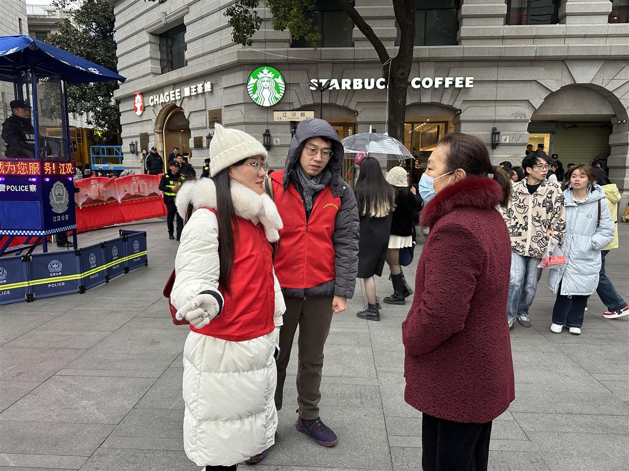午后2时,江汉城管干部职工悉数到岗,在指定分区值守点位就位,用沉稳的身影为市民游客筑起安全防线。为消除气球售卖的安全隐患,城管部门特意在人流密集区域设置了三处集中售卖点;江汉城管青年志愿者服务队则分成小组,在联通路口主动为往来市民提供问路指引、清摆单车等暖心服务,用微笑传递城市温情。