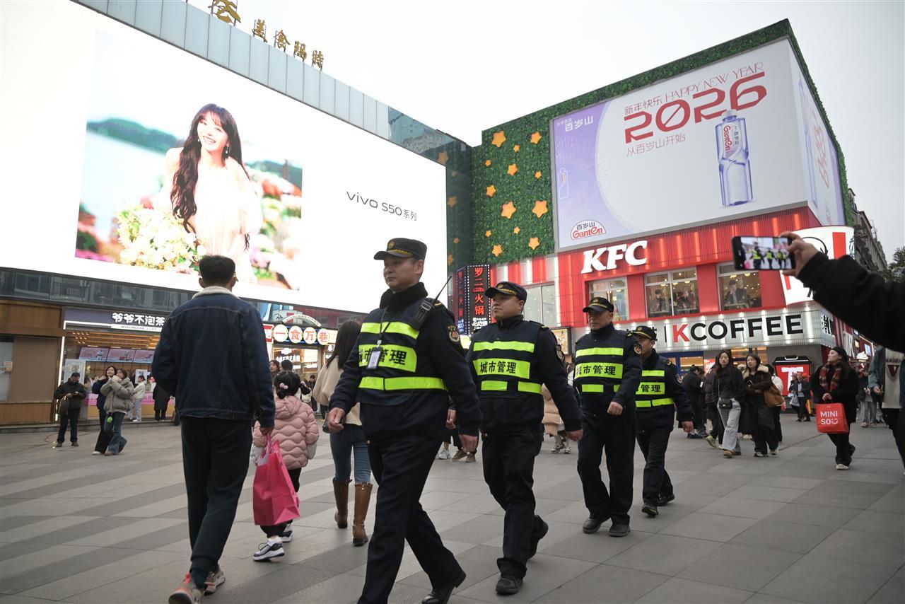 2025年12月31日晚,武汉江汉关跨年光影秀如期上演,万千市民游客汇聚于此,在光影与欢笑中倒数,共赴2026新年之约。当城市沉浸在跨年的喜悦与浪漫中时,江汉区城管执法局的300余名干部职工全员坚守一线,用提前谋划的细致、雨中坚守的执着,为这场跨年夜保驾护航,让冰冷的寒潮里涌动着暖暖的安心。