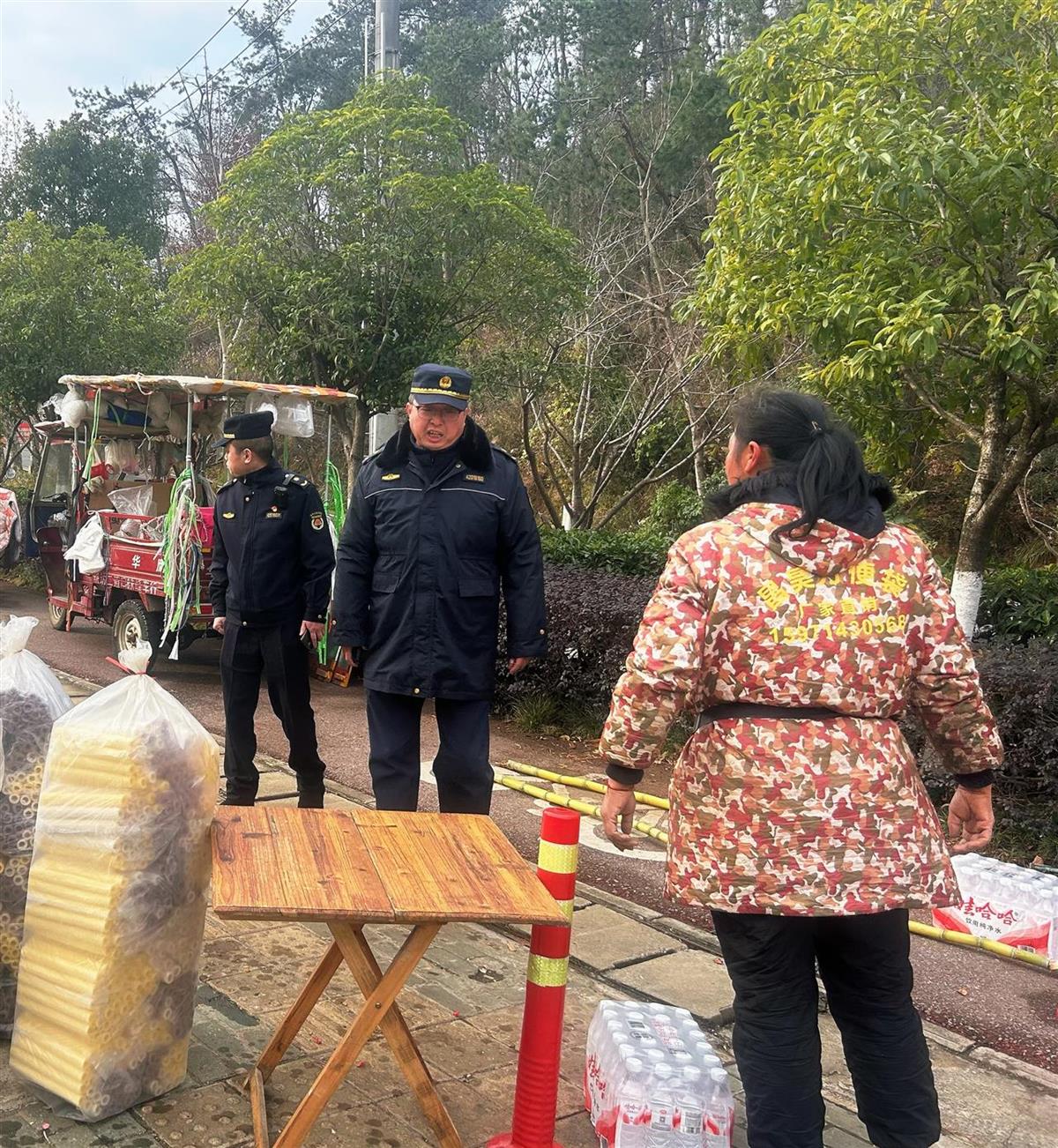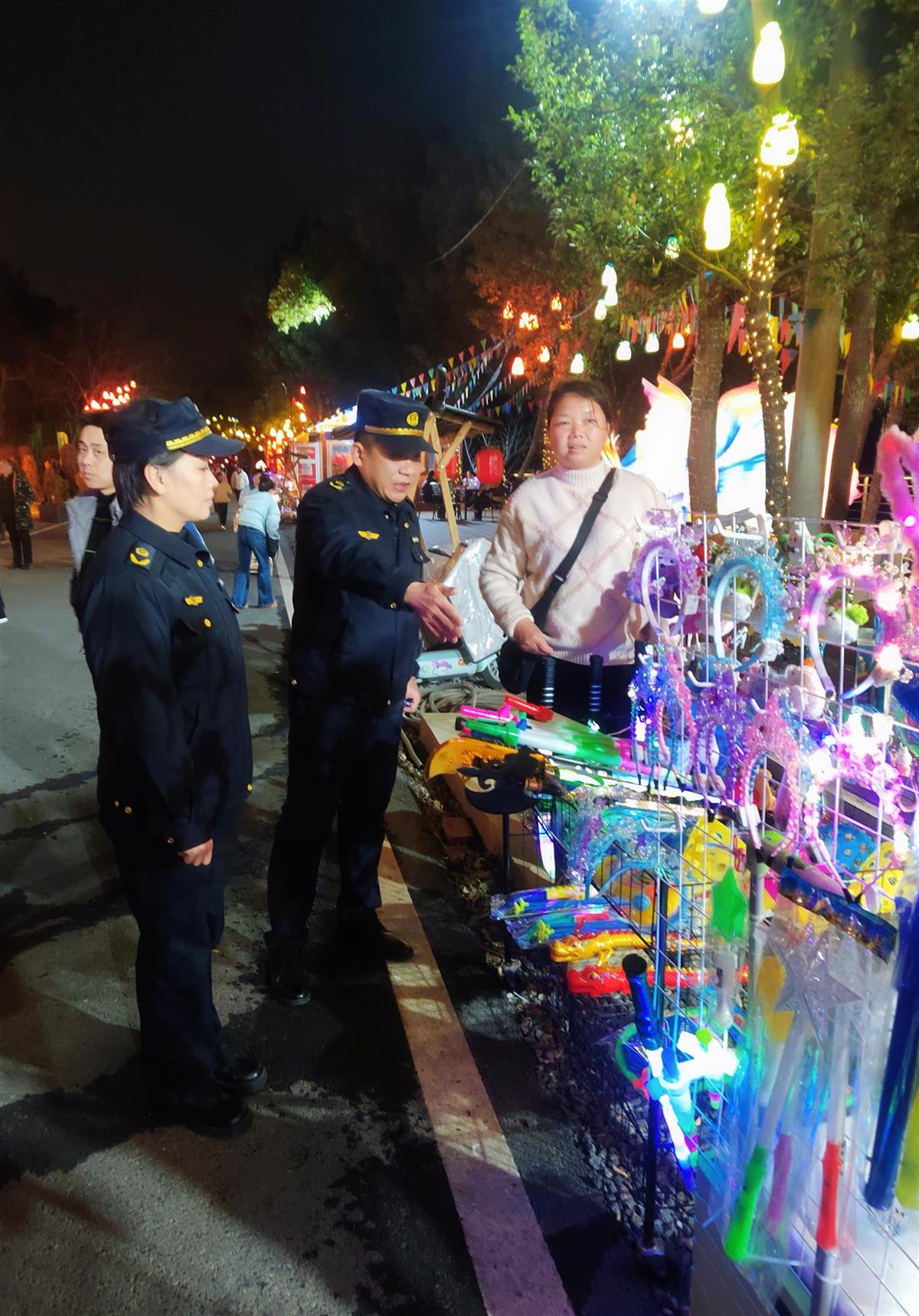 在元旦各项文旅活动如火如荼进行时,精细化、人性化的城市管理保障体系平稳运行着。江夏城管与各街道综合执法中心协同运作,形成“定点值守+动态巡查”的联动模式,街道力量在核心区域固守,维护秩序的同时,主动为游客排忧解难,区局力量在全域机动策应,快速处理各类突发问题,点面结合,确保城市管理工作的反应速度与覆盖广度。