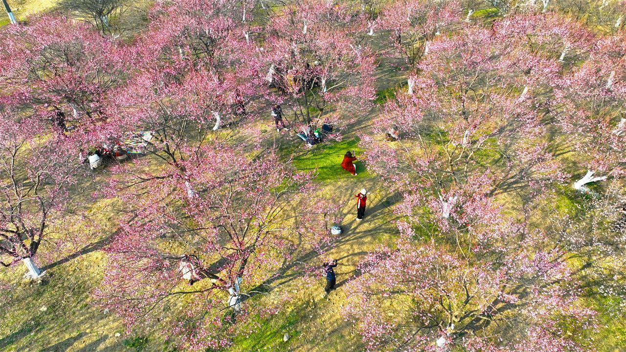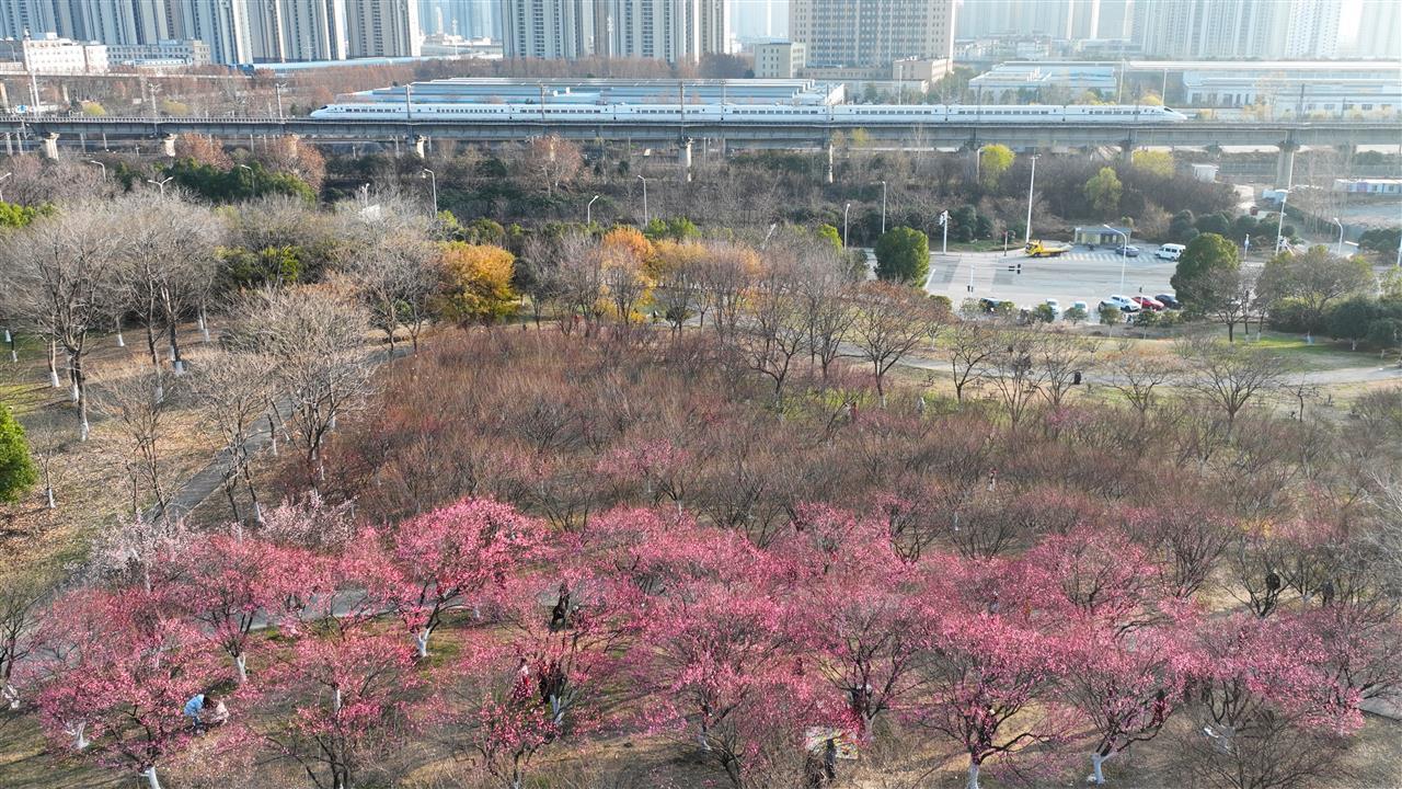 三九时节,寒意正浓,武汉竹叶海公园的梅花却迎来了盛放期。园内红梅吐艳、白梅盈雪,胭脂红与素雪白点缀在虬曲的枝头,相映成趣。微风拂过,暗香浮动,为萧瑟的冬日平添了几分盎然生机。梅林步道上,前来赏梅的市民络绎不绝。大家或驻足细看,或打卡拍照,欢声笑语萦绕在梅林间,勾勒出一幅冬日寻梅的惬意画卷。