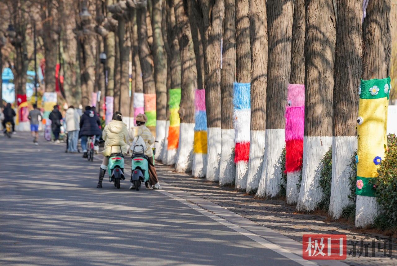 近日,武汉东湖绿道悄然换上“彩妆”——从梨园大门到九女墩路段,近百株大树或穿上彩色针织“毛衣”,或被画上惟妙惟肖的动物与风景,昔日的绿道俨然变身童趣满满的“东湖彩道”,成为市民游客打卡新热点。