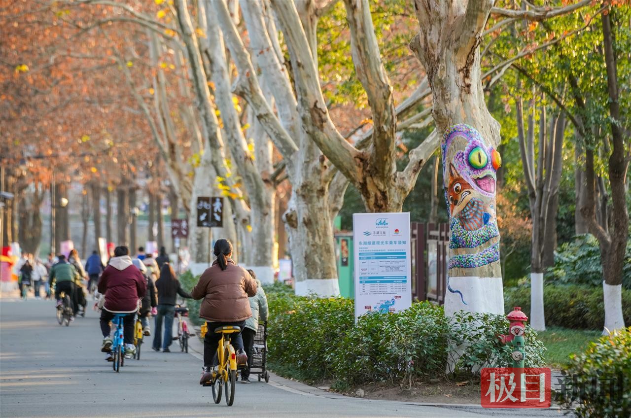 “不管晴天雨天,东湖都有新风景!”游客们纷纷驻足与彩绘大树合影,灵动的创意设计让冬日绿道焕发新活力。这场自然与艺术的碰撞,不仅为市民游客带来沉浸式游览体验,更彰显了武汉东湖的热情与创意。