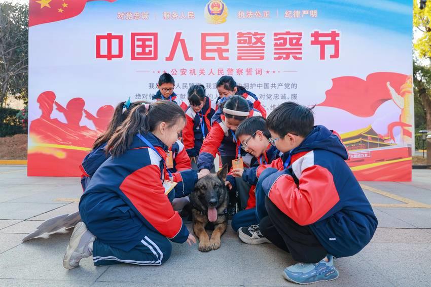 最受小朋友们追捧的当属警犬“豆包”的精彩表现。“卧!”训导员一声令下,豆包立即趴下,在训导员的口令下,豆包完美执行各项指令,引起观众们的阵阵欢呼和掌声,纷纷举起手机记录这精彩瞬间。“原来警犬不是宠物,是真正的‘战士’!”少年警队代表赵睿麟由衷赞叹。表演结束后,小朋友们迫不及待地围在豆包身边合影留念。